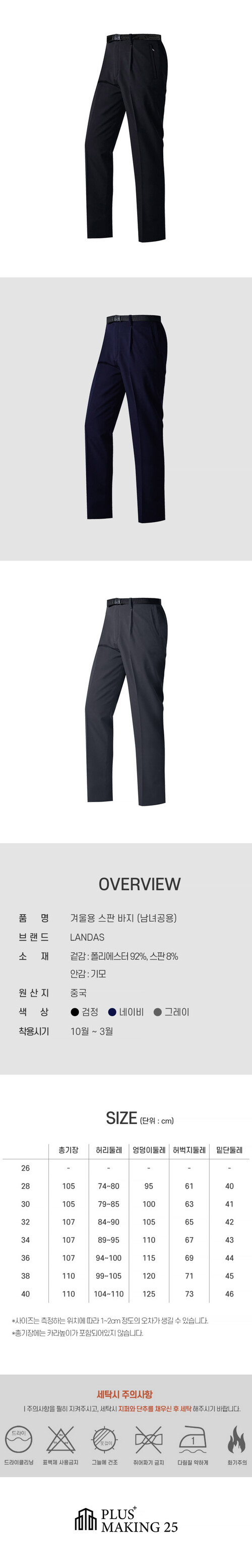 기모 스판바지-네이비